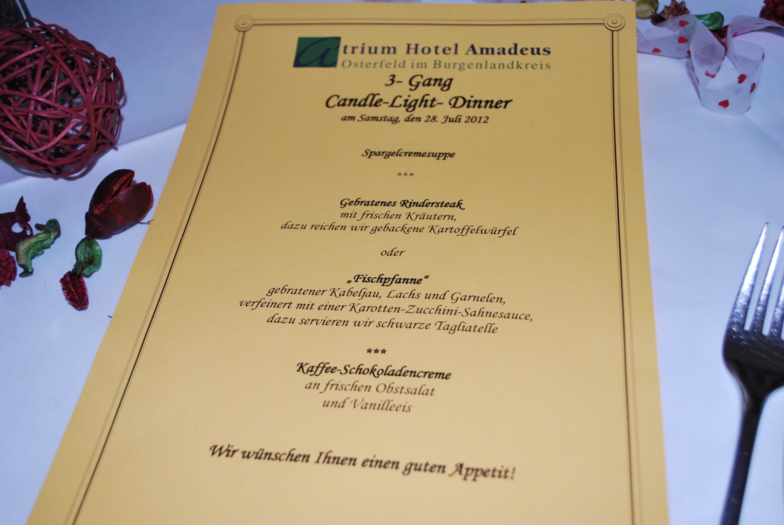 Menükarte Dinner