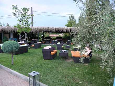 Gemütliche Möbel im Garten nähe Pool und Bar