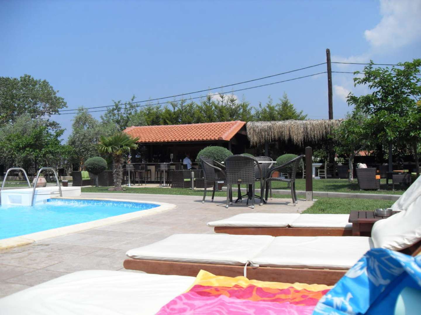 Am Pool mit Blick auf die Bar