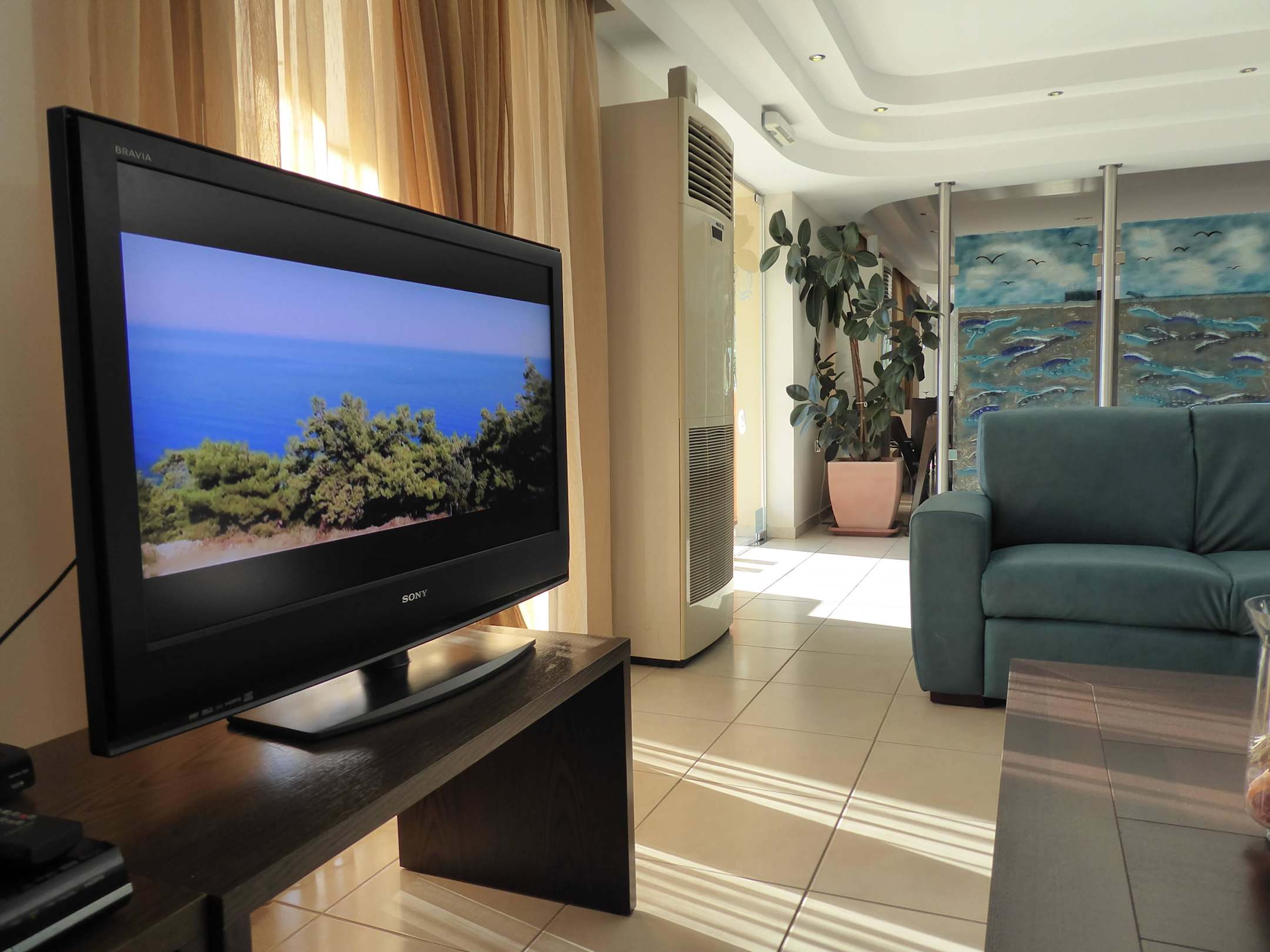 Fernseher mit Werbefilm über Thassos