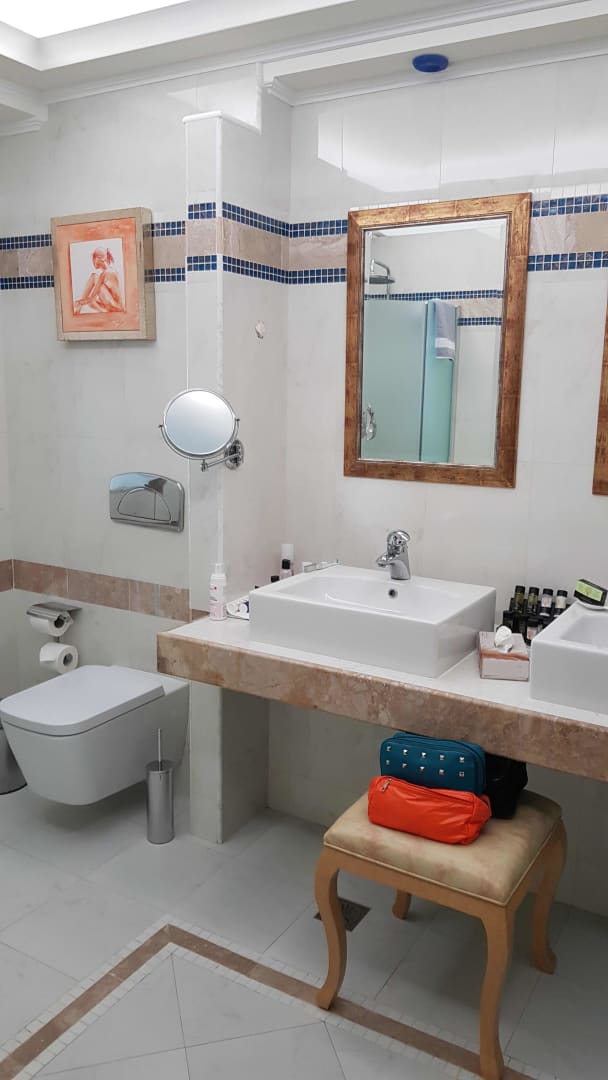 Badezimmer mit 2 Waschbecken und WC