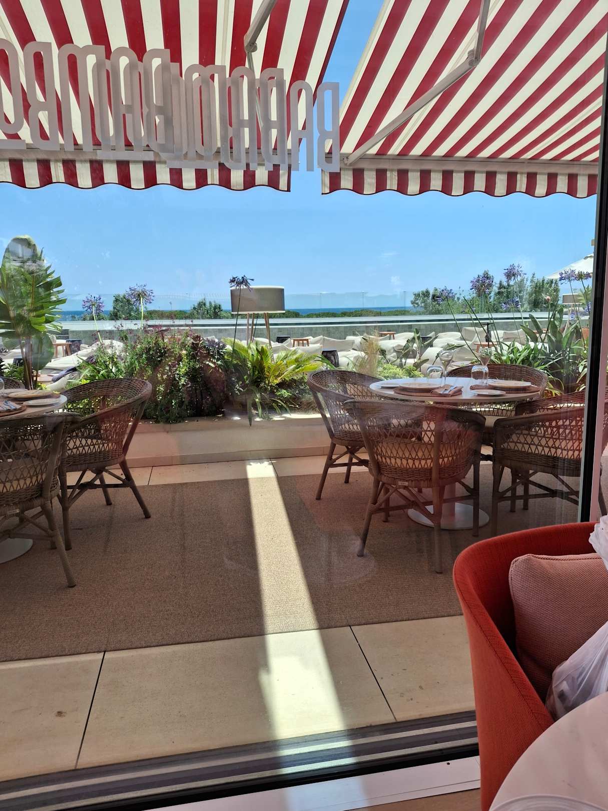 Ausblick von der Dachterrasse mit Restaurant und einem Pool