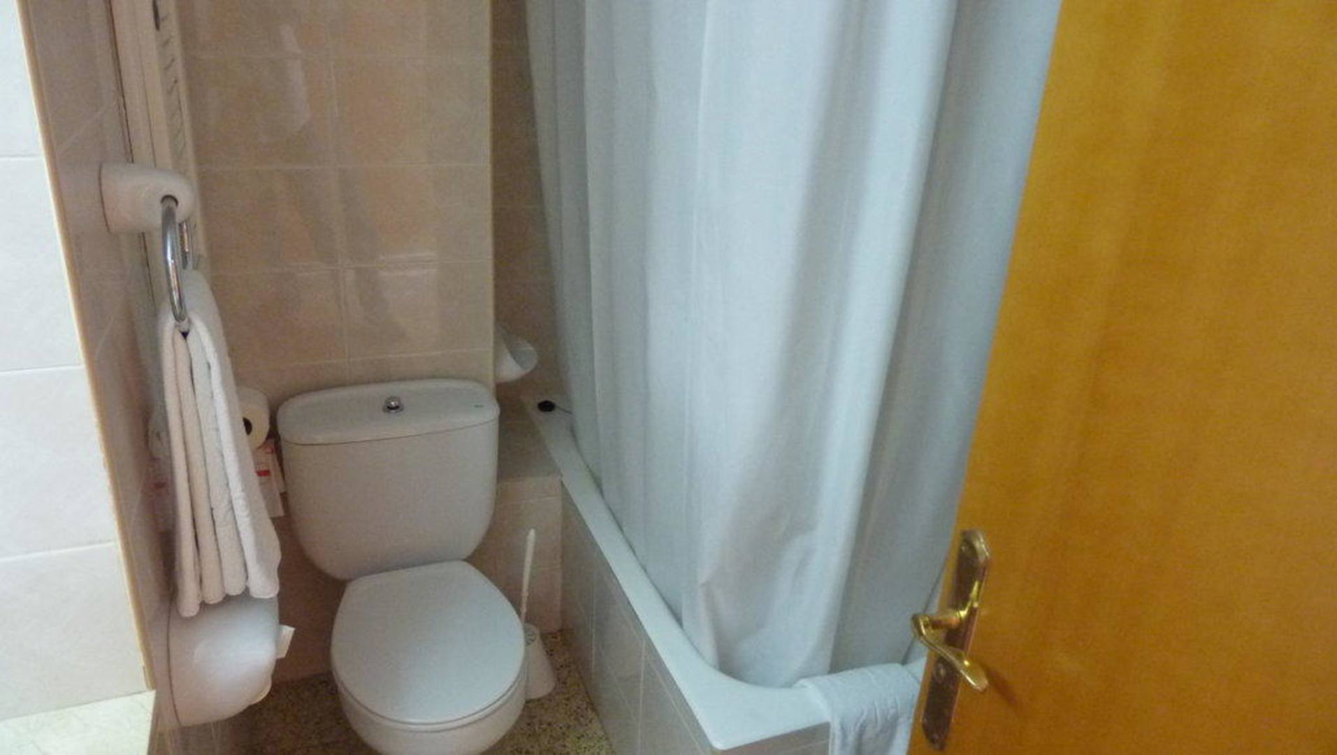 Bad, Duschvorhang wacklig hoch drei
