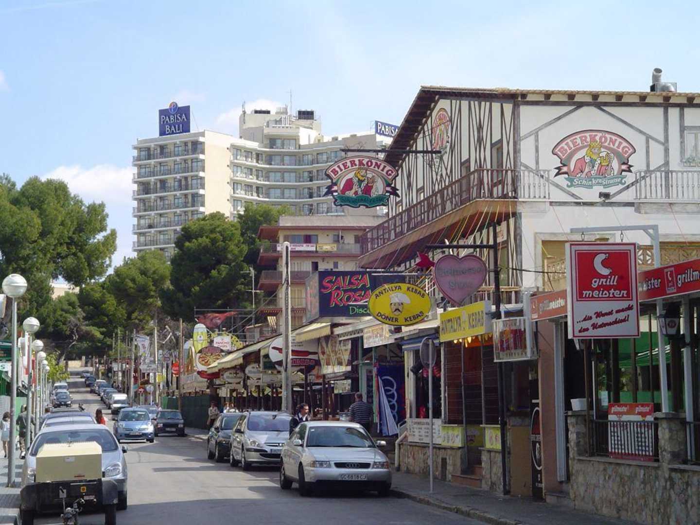 Partymeile am HotelBlick von der "Schinkenstraße/BIERKÖNIG" Richtung Hotel