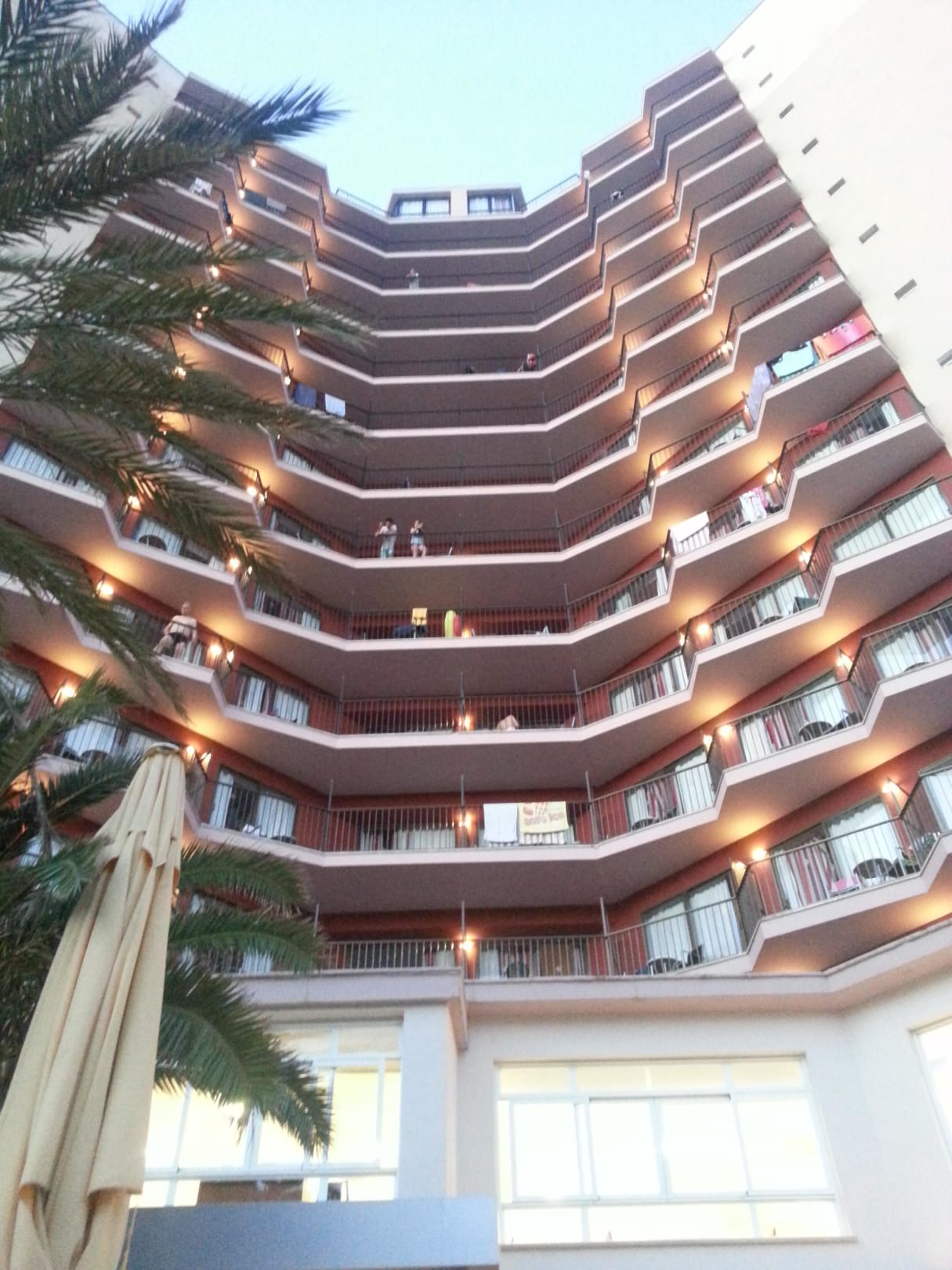 Blick vom Pool auf das Hotel