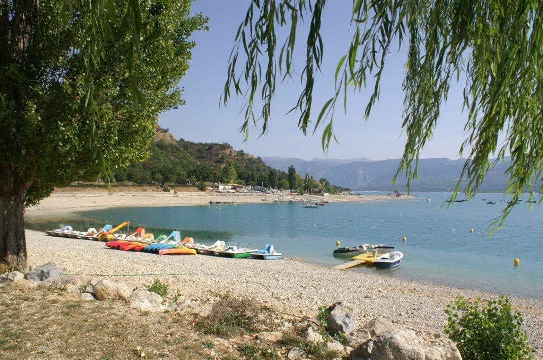 öffentlicher Kiesstrand am Stausee im Ort