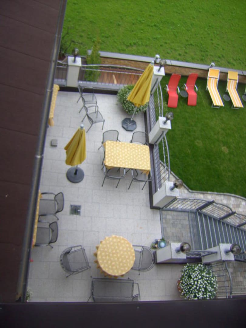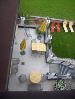 Ausblick vom Balkon auf Terrasse Auenhotel