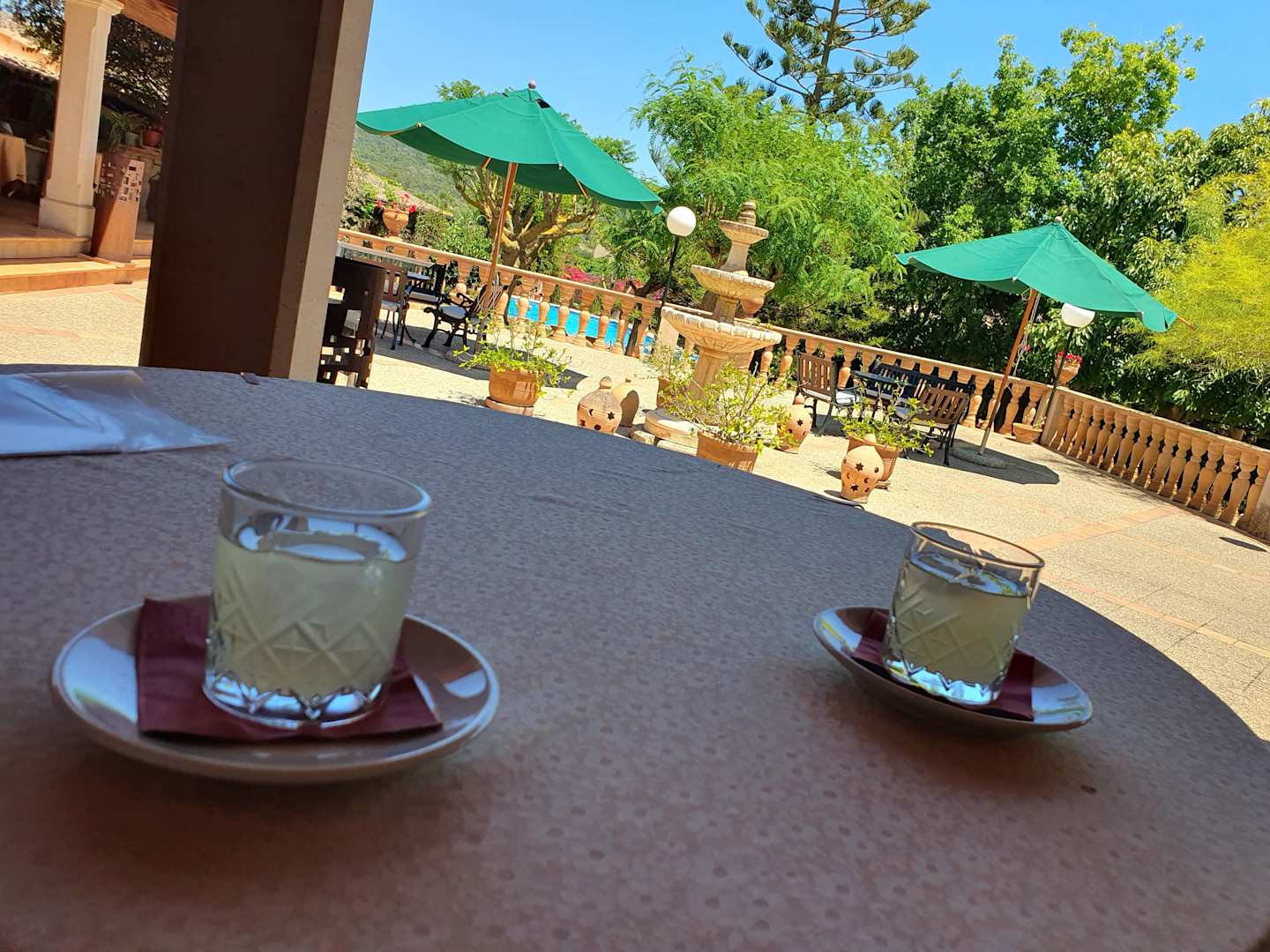 Die Terasse liegt im Schatten und einen frischen Zitronensaft als Begrüßung, herrlich.