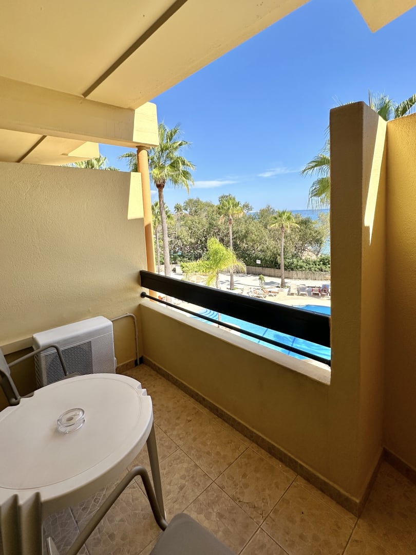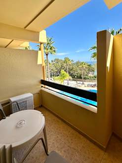 auf dem Balkon von Zimmer C310 (über den Pool Meerblick)
