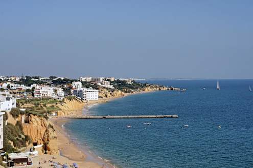 Im Hintergrund Oberhalb der Halb-Insel befindet sich Hotel Auramar.