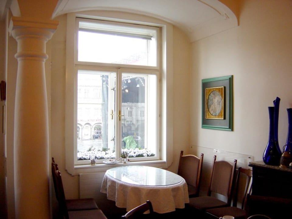 Blick vom Frühstücksraum zum Hauptplatz