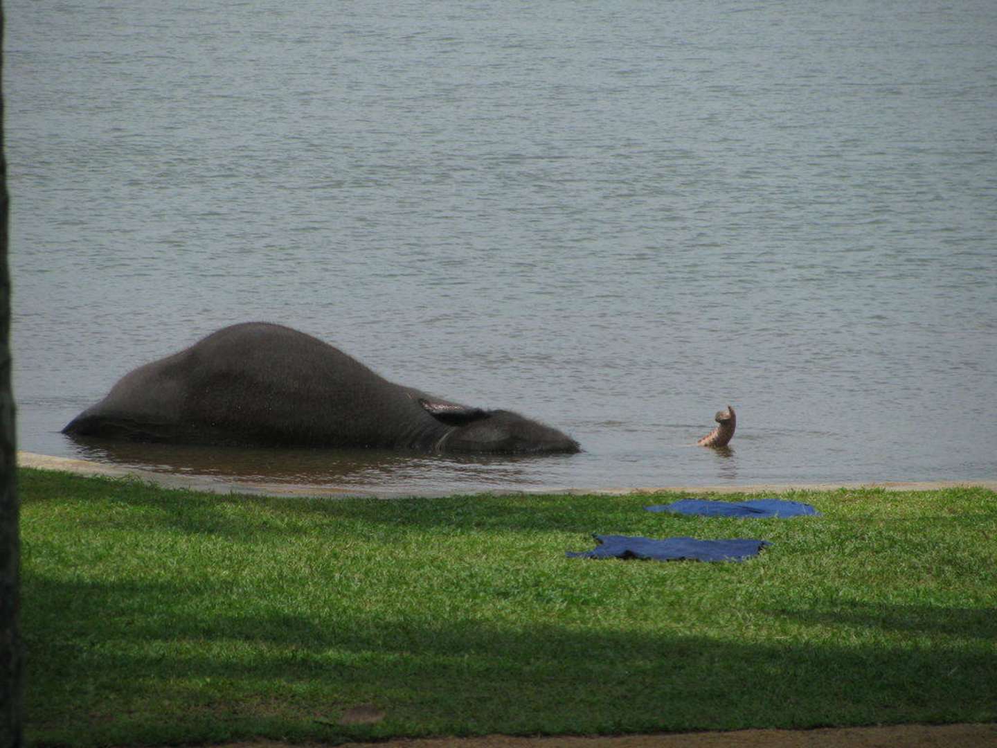 Paula badet, der Hotelelefant
