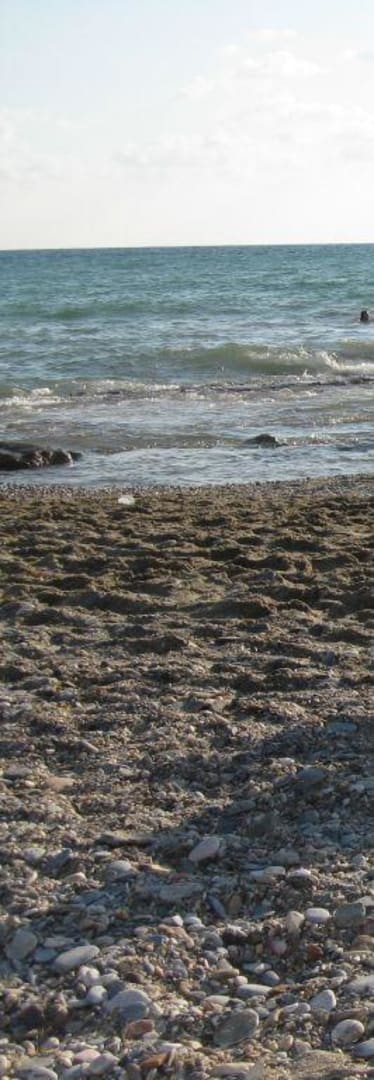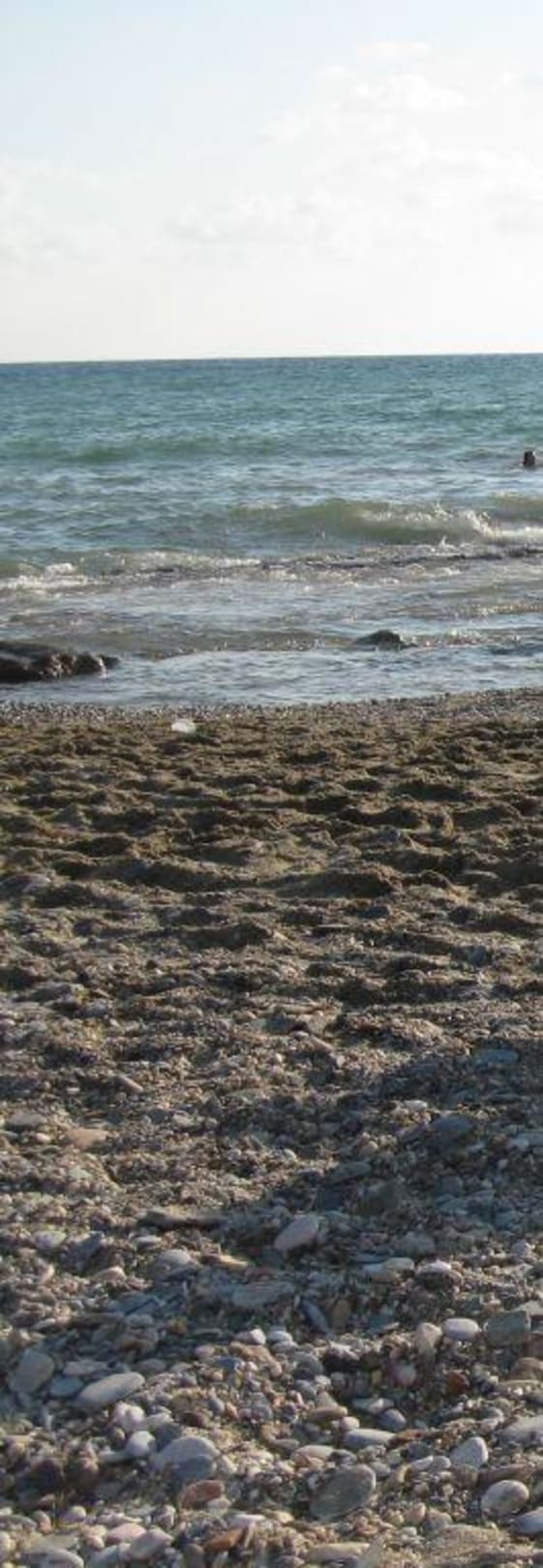 Der Kiesstrand zum MeerVorsicht auch nicht sichtbare Felsen