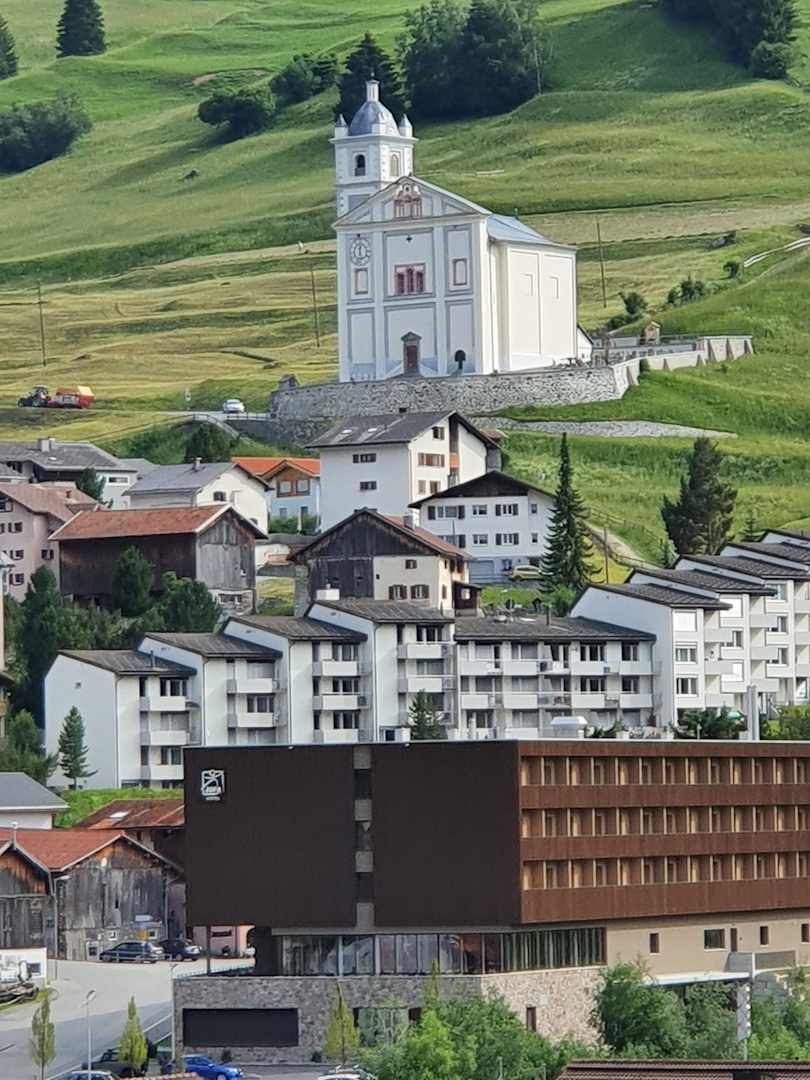 JUFA Hotel Savognin und ein Teil des Ortes.