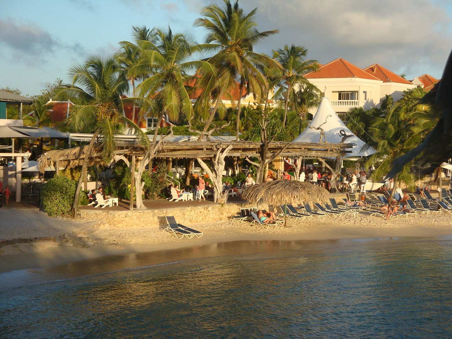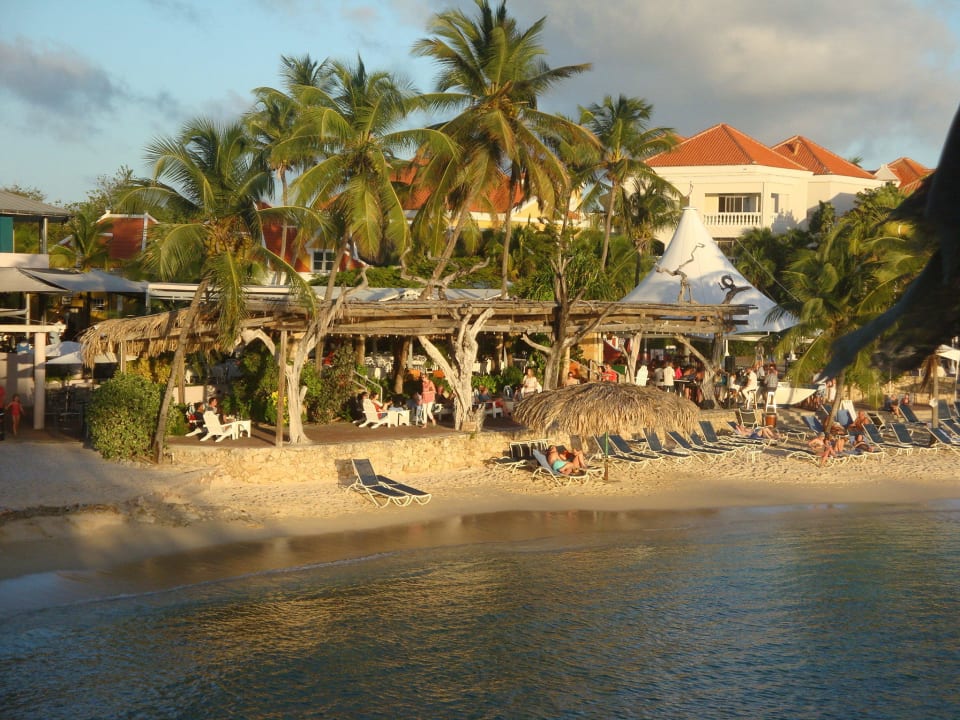 Blick auf die überdachte Strandterrassehinter der Terrasse befindet sich das "Belle Terrace"-Restaurant