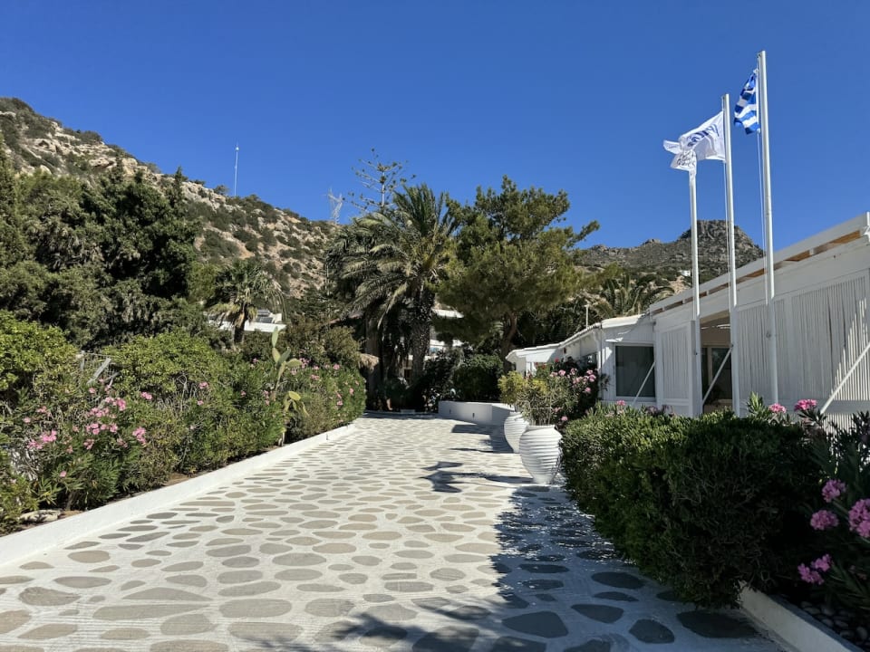 Einfahrt mit Eingang und Lobby rechts