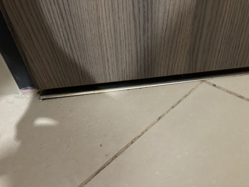 Zimmer1,5-2 cm Spalt unter der Eingangstür, mit ohrenbetäubenden Pfeiffgeräuschen durch den Wind (alles undicht)