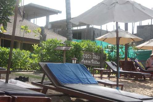 Strand vor dem Ayara mit Restaurant und Baustelle Ayara Villas