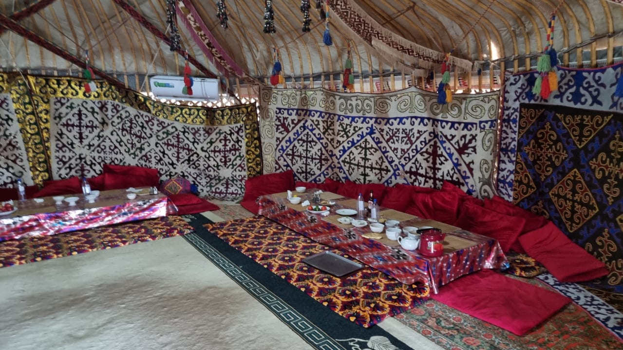in der großen Jurte für Frühstück und Abendessen