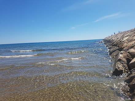Am Strand, am kleiner Hafen