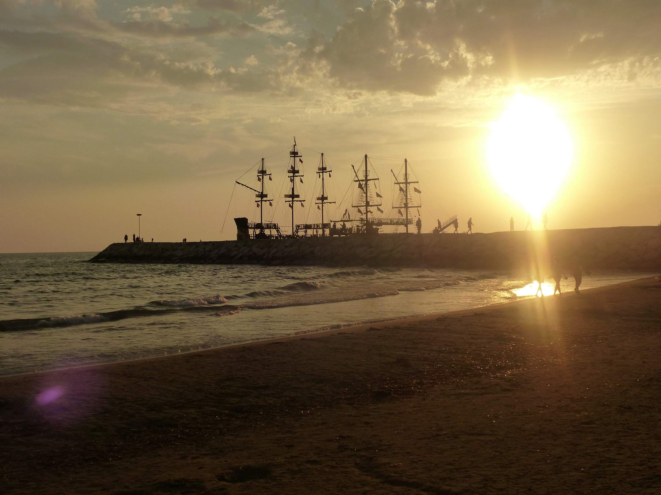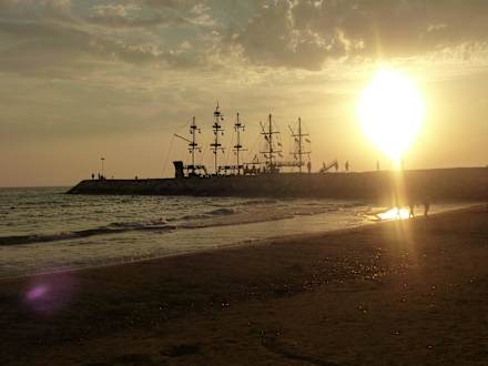 Strandabschnitt bei Sonnenuntergang beim Hotel