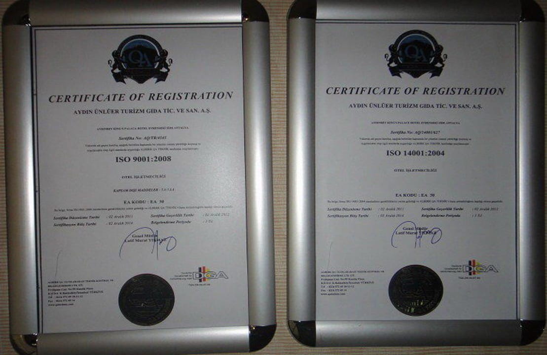 Dieses Hotel hat zahlreiche Zertifikate - hier: - ISO 9001 Qualitätsmanagement und - ISO 14001 Umweltmanagement Diese Normen können nur die aller besten Hotels erfüllen!