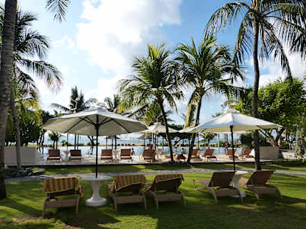 Liegen in der GartenanlageNeben den Liegen direkt am Strand gibt es auch zahlreiche Liegen über die Gartenanlage verteilt.