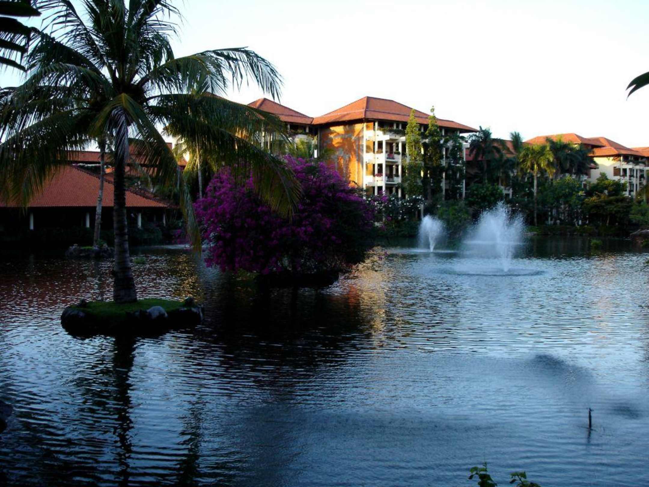 Innenanlage des Hotels mit großem Teich