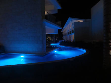 Einer der Pools bei Nacht