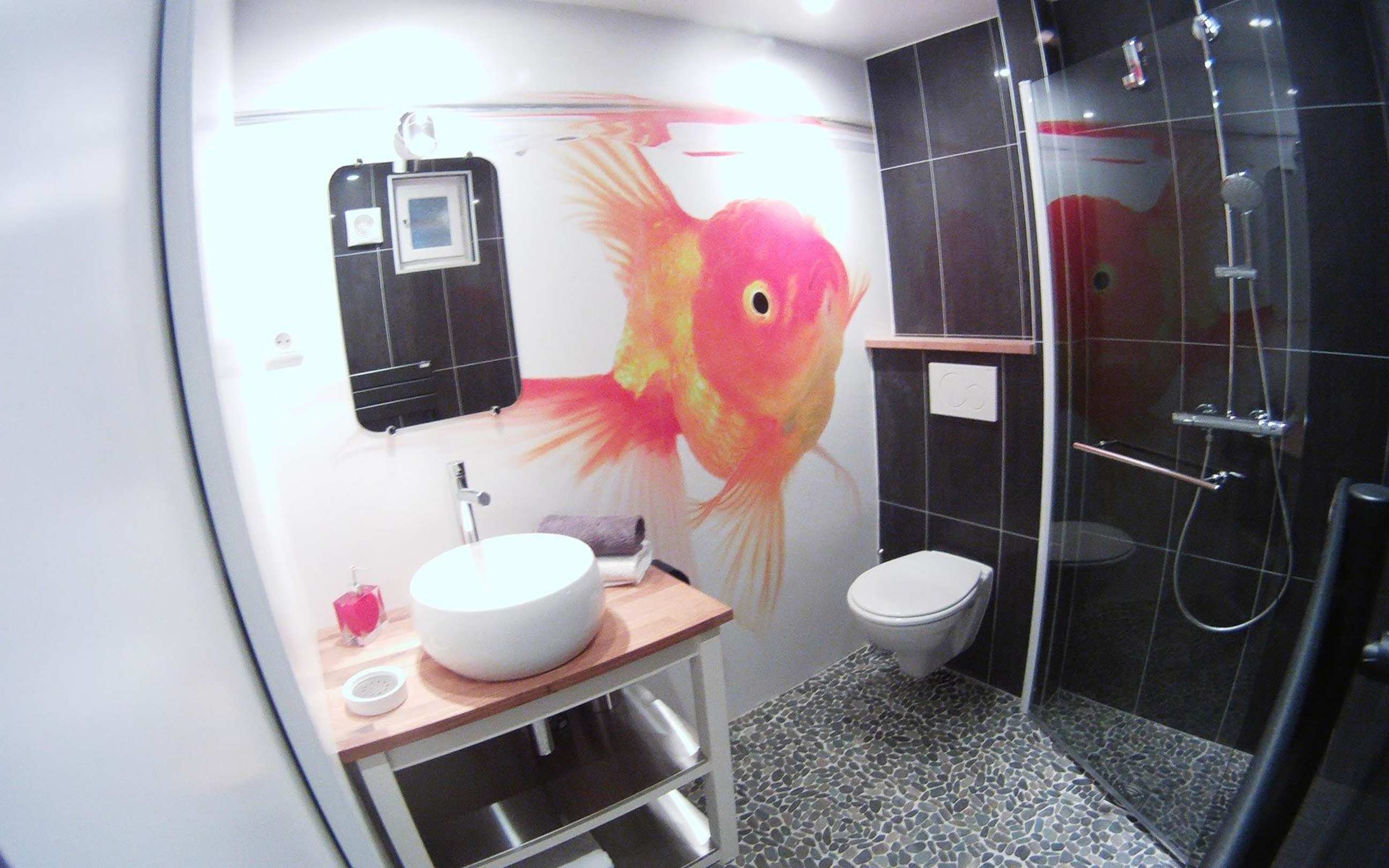 Une salle de bain avec douche à l'italienne