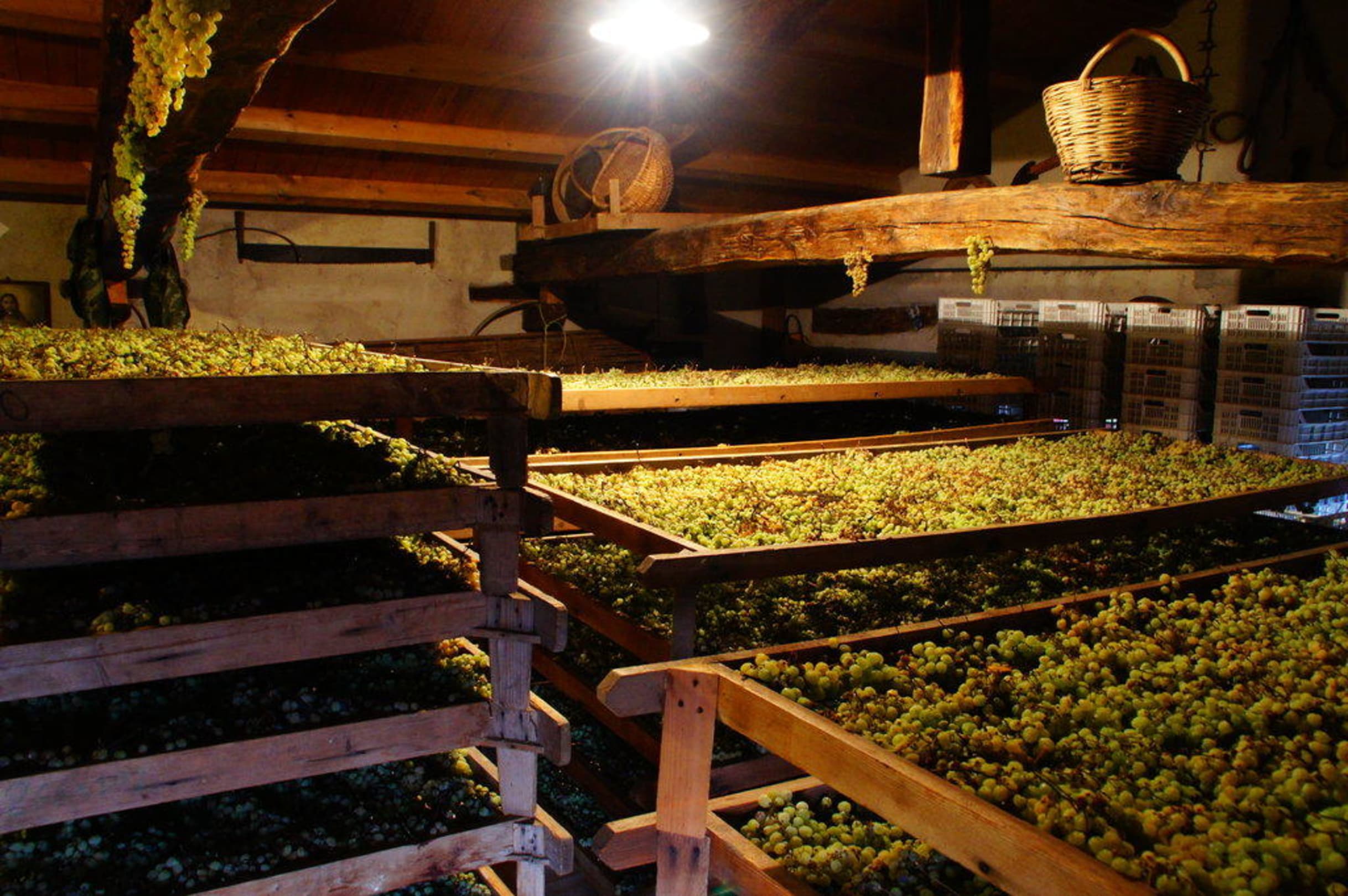 Süßweinbereitung im ProseccoSeltener Süßwein "Torchiato" aus getocknetne Traubenmaterial im Proseccogebiet