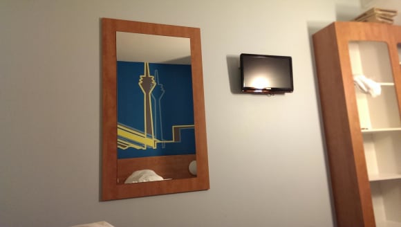 Wand mit Spiegel und Tv
