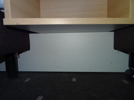 Schmutz unter der Nachtkonsole zwischen den Betten