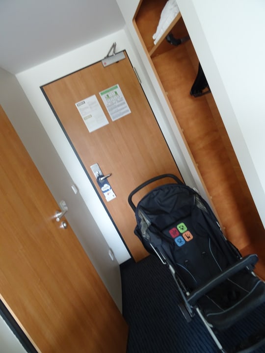 Eingangsbereich. Links: Tür zum bad. Rechts: Schrank.