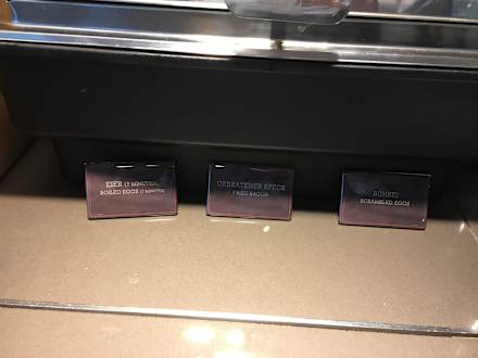 Eier, Speck, Rührei im Frühstücksangebot