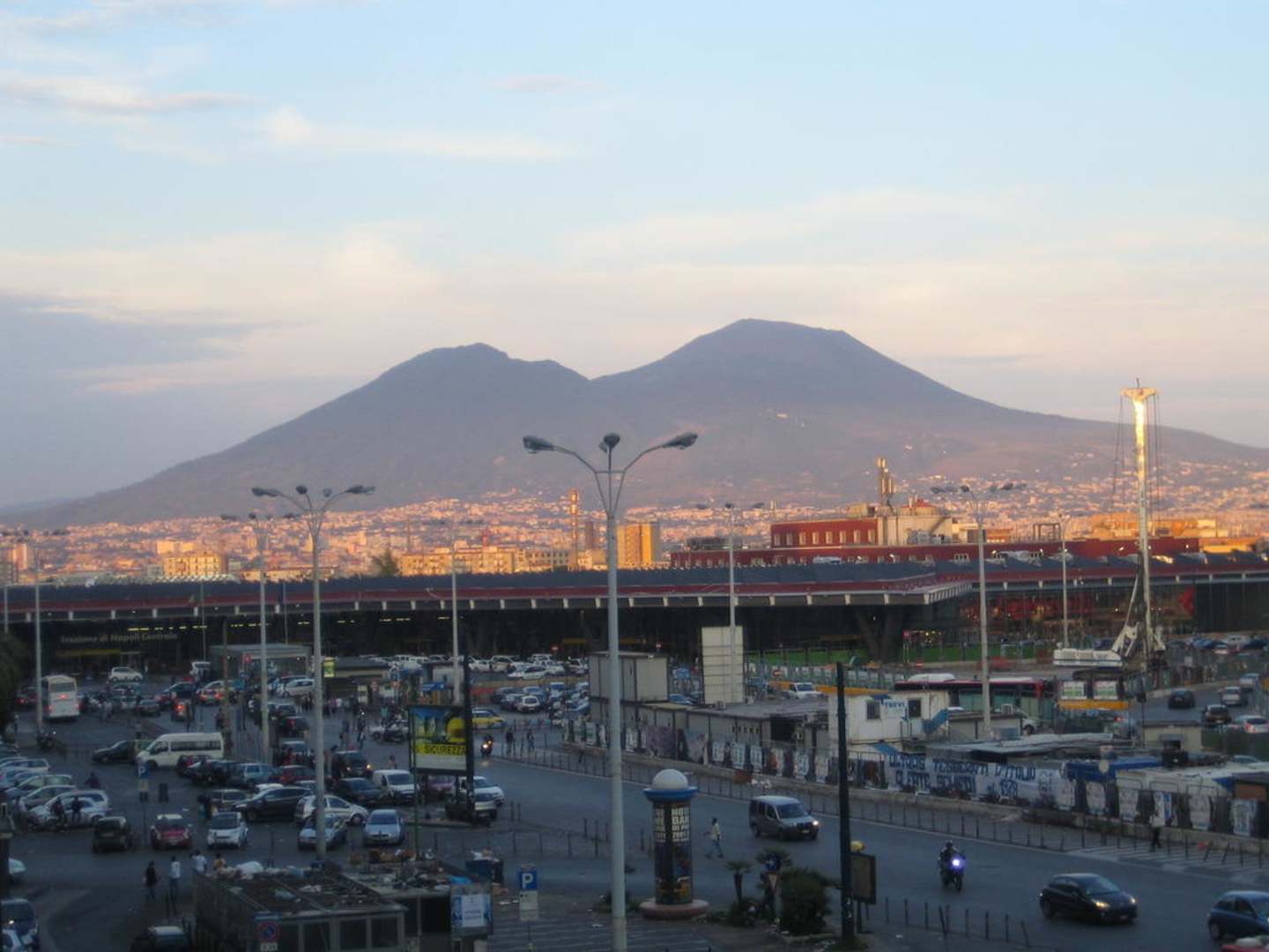 Blick vom Balkon auf den Vesuv,darunter der Bahnhof.