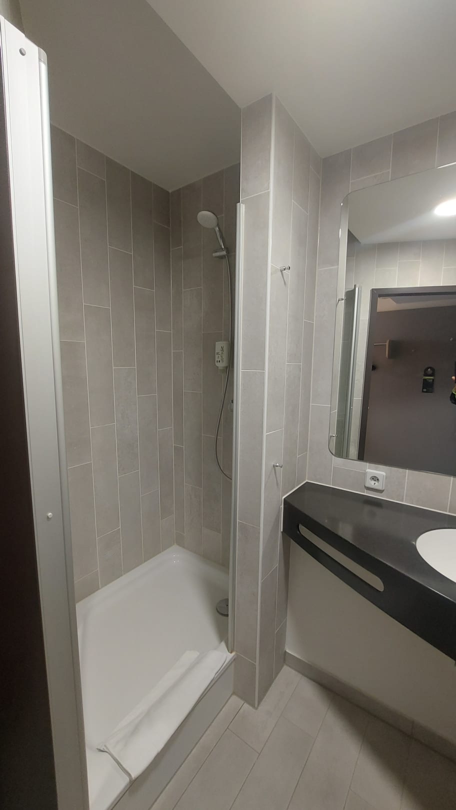 Das Bad ist etwas dunkel, die Dusche könnte sauberer sein.