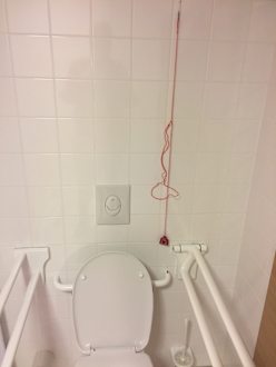 hochgebundener Notfallmelder, vom Fussboden nicht erreichbar