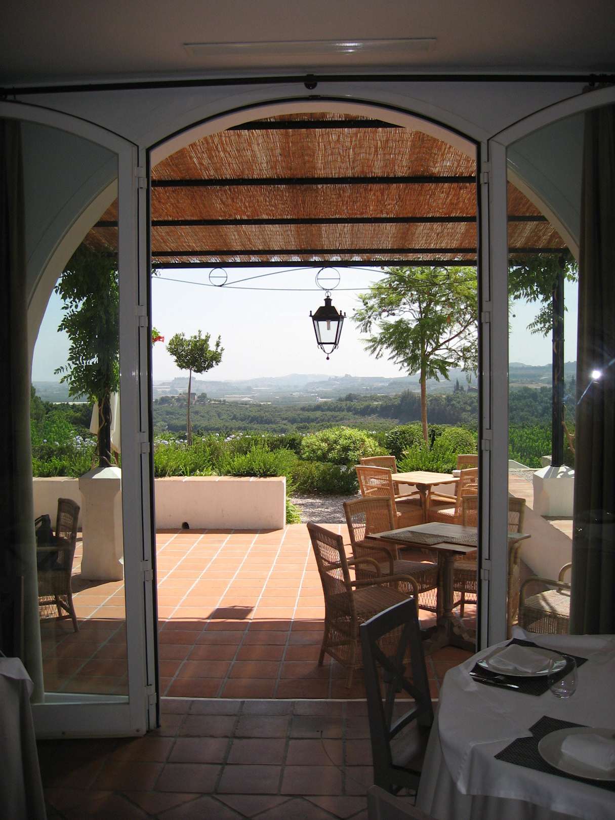 Blick vom Restaurant auf die Terrasse