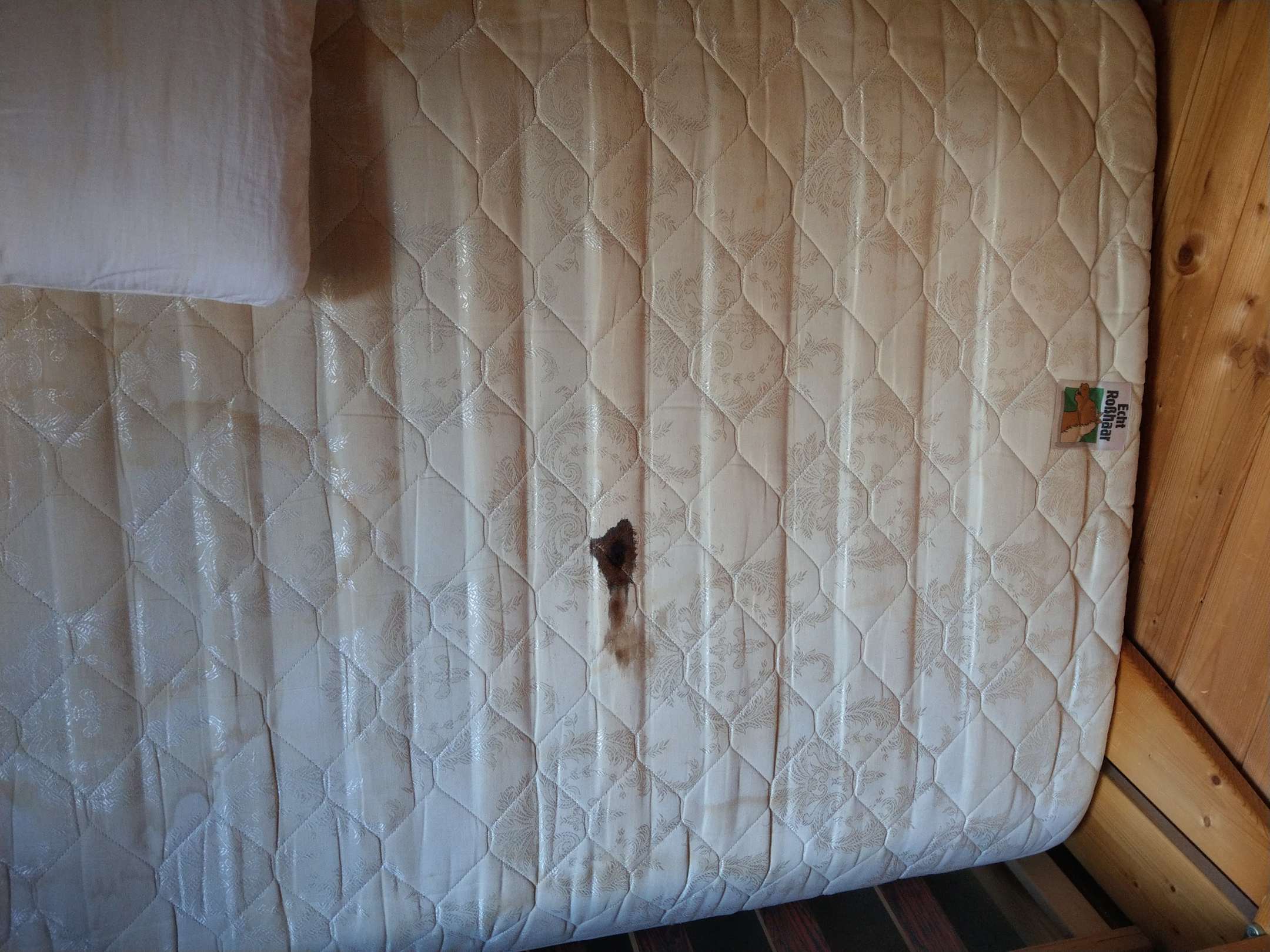 Fleckige Matratze im Obergeschoss