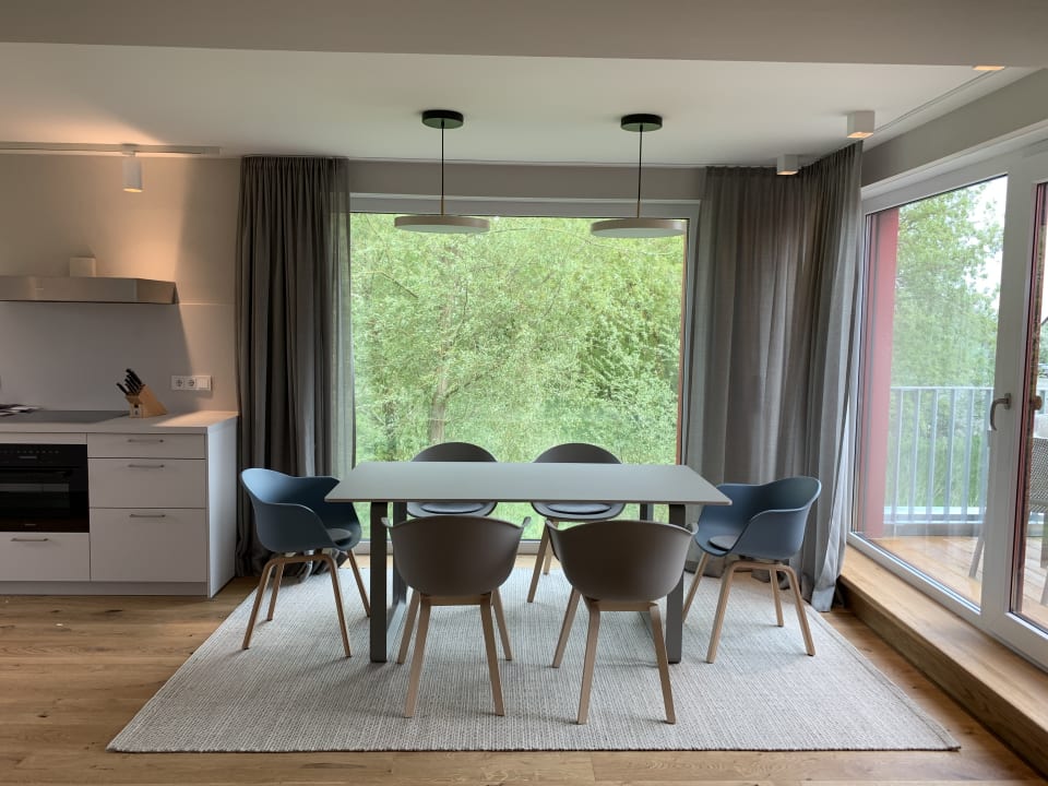 Super schöner Wohn- und Essbereich mit offener Küche. Und einem zweiten Balkon. Wunderschön eingerichtet, modern und alles was man braucht. Wir waren begeistert!
