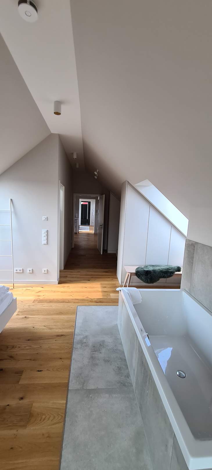 Blick aus dem Schlafzimmer ins gesamte Penthouse