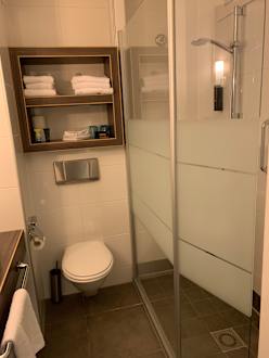 Das Badezimmer ist vergleichsweise klein.