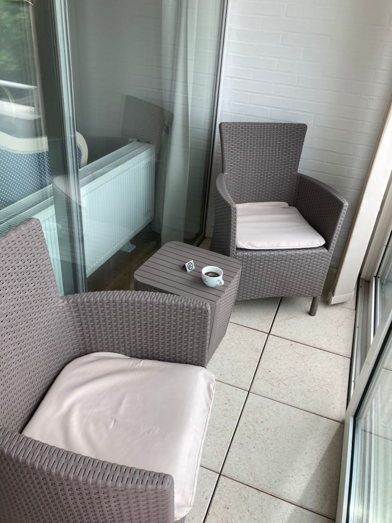 Kleiner Balkon mit komplett schließbarer Fensterfront