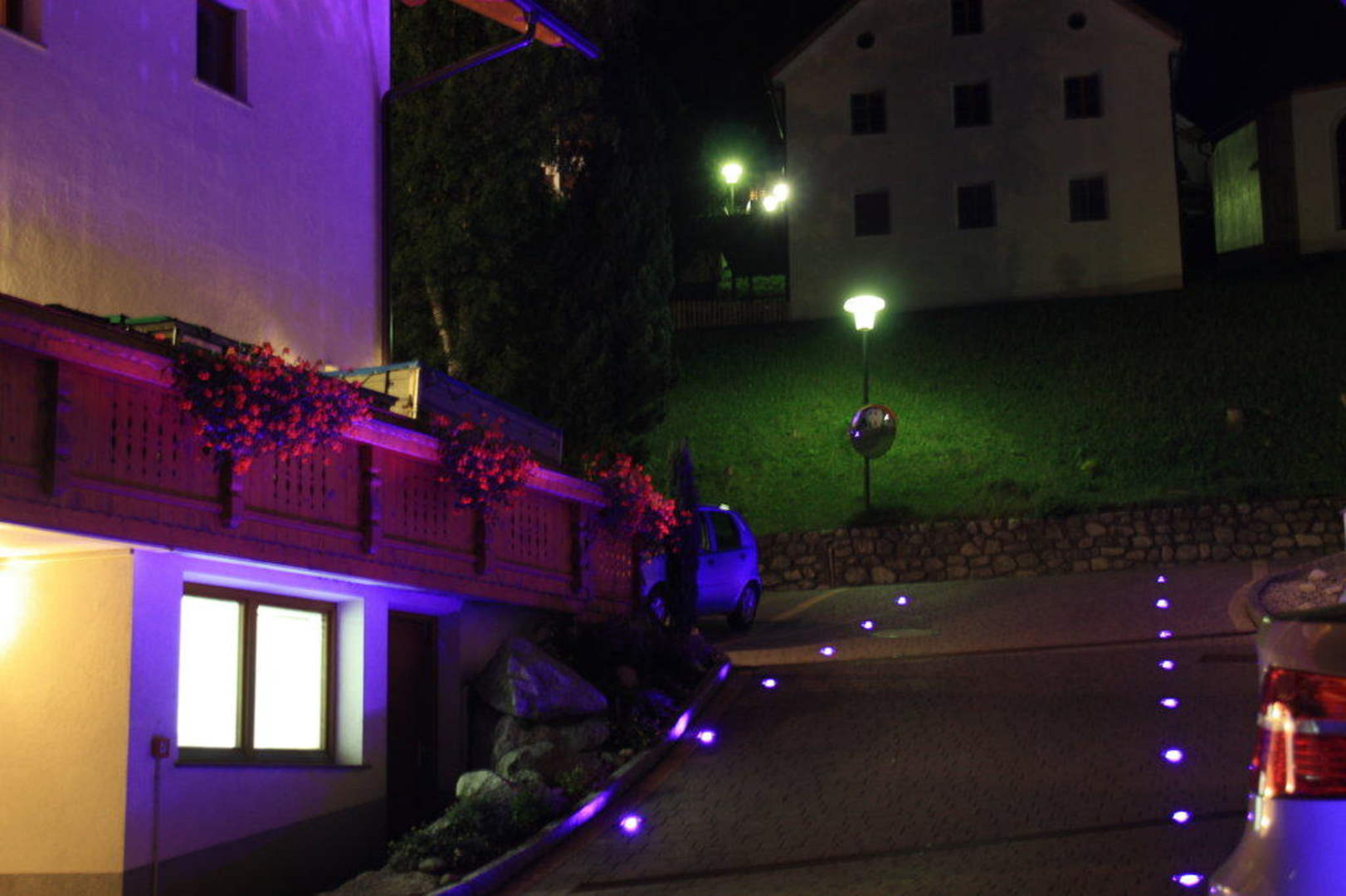 Beleuchtete Einfahrt zur Garage