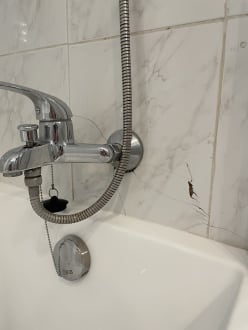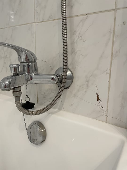 Alte Badewanne und defekte Fliesen im Zimmer 627