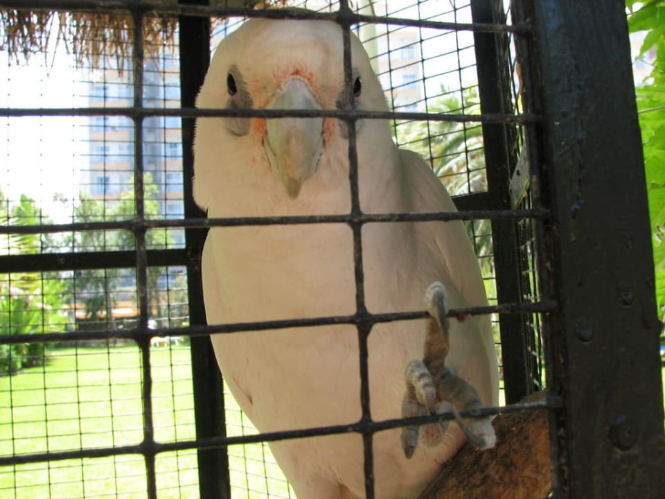 liebling aller urlauber,sprechender kakadu im garten