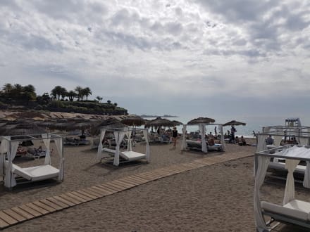 Ein gepflegter Strand mit verschiedenen Ausstattungen.