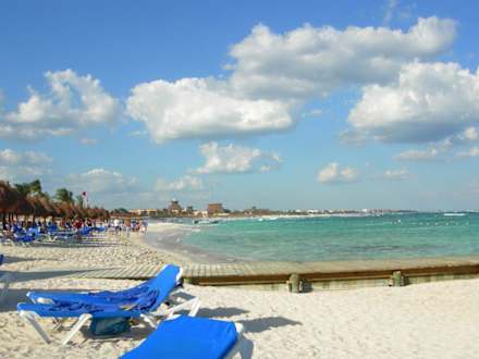 Der Strandabschnitt vom Coba reicht von dem Steg bis hinter zur roten Fahne.