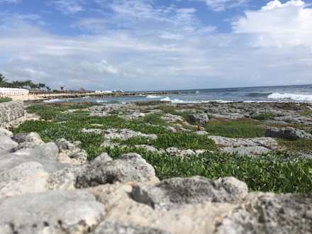Ein Strandabschnitt des BP Akumal, Blick auf das vorgelagerte Riff